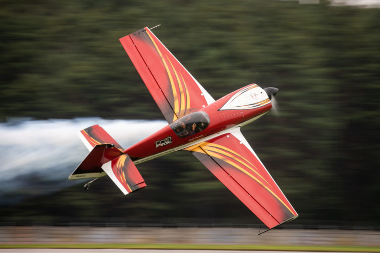 Lietadlo MXS a pilot Zoltán Véres 2 počas Medzinárodných leteckých dní SIAF 2023 na Leteckej základni Malacky - Kuchyňa. Kuchyňa, 3. september 2022. Foto: SITA/Diana Černak