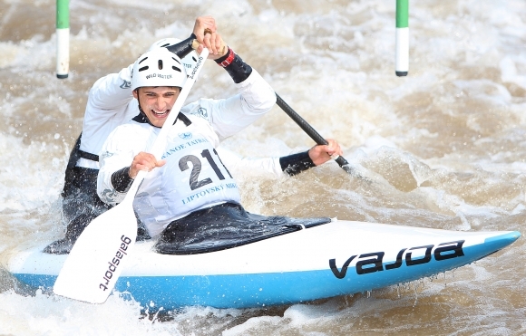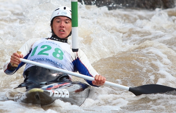 Vodný slalomár Alexander Slafkovský počas 29. ročníka Medzinárodných liptovských slalomov v areáli vodného slalomu v Liptovskom Mikuláši. Liptovský Mikuláš, 20. apríl 2013. Foto: SITA/Branislav Račko