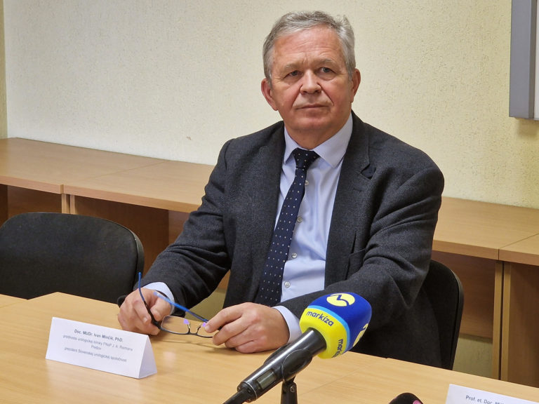 Prezident Slovenskej urologickej spoločnosti a prednosta urologickej kliniky FNsP J. A. Reimana v Prešove Ivan Minčík počas brífingu FNsP J. A. Reimana pri príležitosti medzinárodného diagnostického workshopu pod názvom Cielená biopsia prostaty vo Fakultnej nemocnici J. A. Reimana v Prešove. Prešov, 21. marec 2024. Foto: SITA/Ivan Kriššák