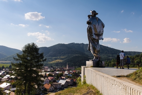 Dominanta Terchovej, nerezová skulptúra Jánošík počas 51. ročníka Medzinárodného folklórneho festivalu Jánošíkove dni. Terchová, 26. júl 2013. Foto: SITA/Milo Fabian