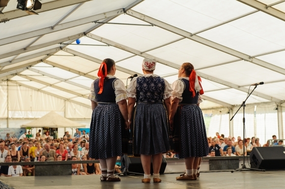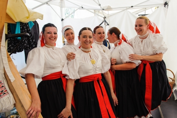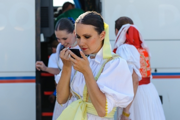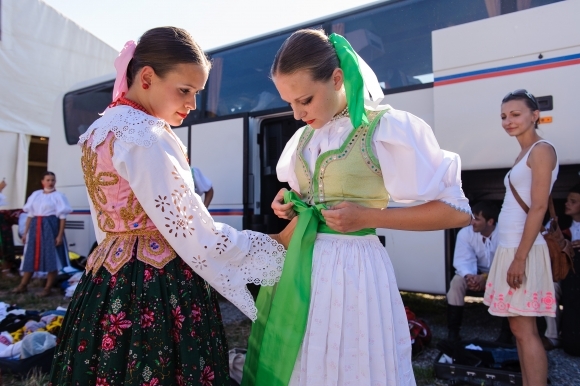 Folkloristky pripravujúce sa na vystúpenie počas 51. ročníka Medzinárodného folklórneho festivalu Jánošíkove dni. Terchová, 26. júl 2013. Foto: SITA/Milo Fabian