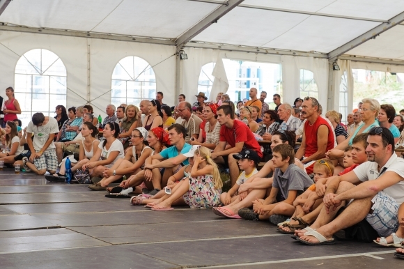 Diváci pod šapitó počas 51. ročníka Medzinárodného folklórneho festivalu Jánošíkove dni. Terchová, 26. júl 2013. Foto: SITA/Milo Fabian