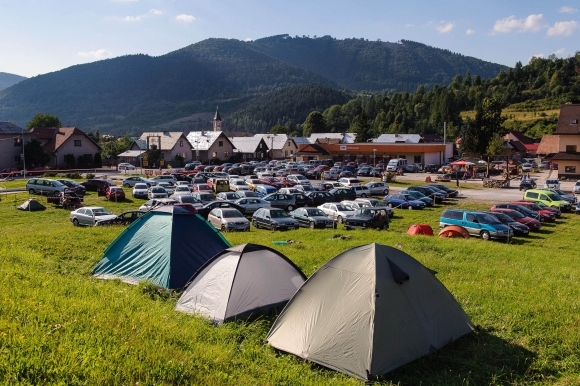 Obec Terchová a stanový tábor počas 51. ročníka Medzinárodného folklórneho festivalu Jánošíkove dni. Terchová, 26. júl 2013. Foto: SITA/Milo Fabian