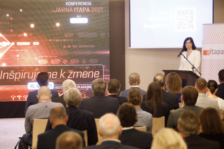 Atmosféra počas príhovoru premiéra SR v rámci Medzinárodného kongresu Jarná ITAPA 2021. Bratislava, 10. jún 2021. Foto: SITA/Branislav Bibel