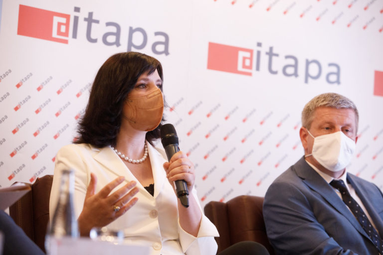 Podpredsedníčka vlády SR a ministerka investícií, regionálneho rozvoja a informatizácie SR Veronika Remišová počas Medzinárodnýho kongresu Jarná ITAPA 2021. Bratislava, 10. jún 2021. Foto: SITA/Branislav Bibel