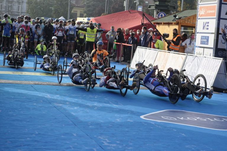 Handbikeri na štarte počas 98. ročníka Medzinárodného maratónu mieru v Košiciach. Košice, 3. október 2021. Foto: SITA/Ivan Fleischer