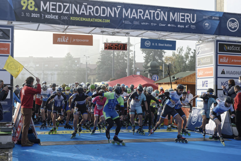 Inline korčuliari na štarte počas 98. ročníka Medzinárodného maratónu mieru v Košiciach. Košice, 3. október 2021. Foto: SITA/Ivan Fleischer