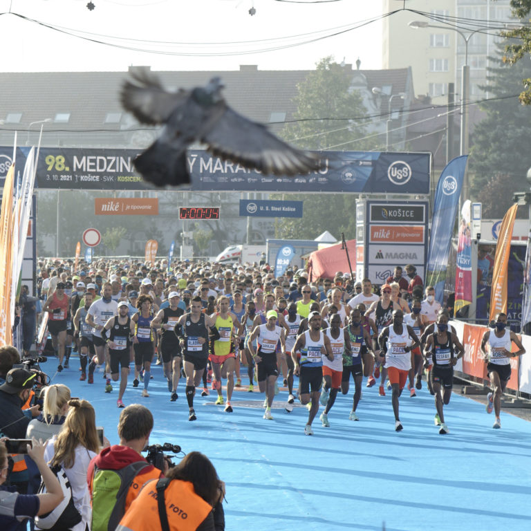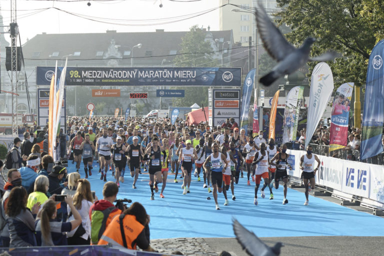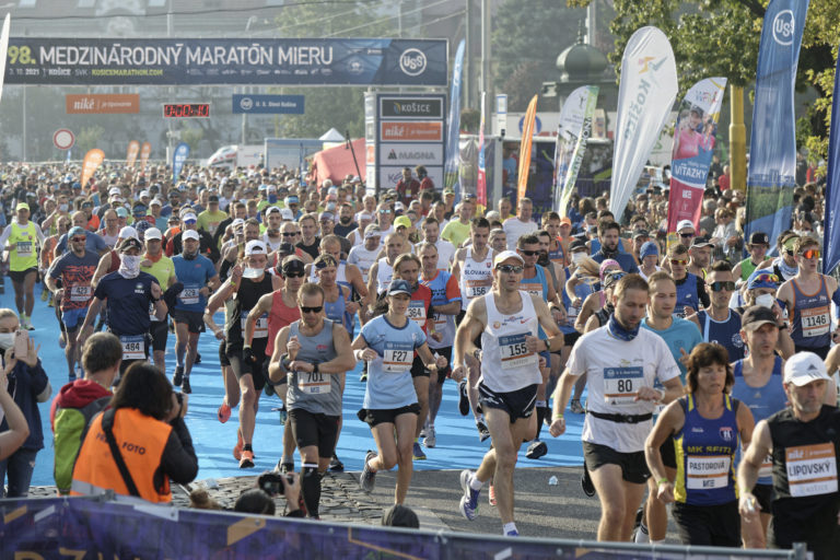 Bežci na štarte počas 98. ročníka Medzinárodného maratónu mieru v Košiciach. Košice, 3. október 2021. Foto: SITA/Ivan Fleischer