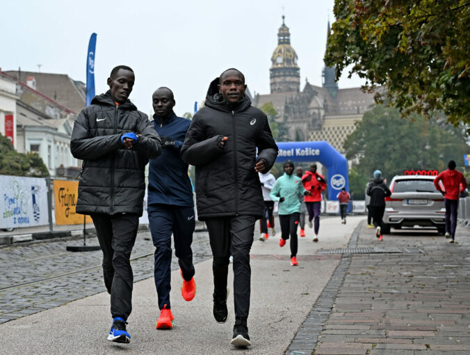 Rozcvička afrických bežcov pred štartom Medzinárodného maratónu mieru v Košiciach. Košice, 5 október 2025. Foto: SITA/Viktor Zamborský