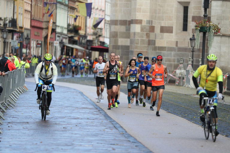 Vedúca pretekárka priebežného poradia Petra Pastorová (uprostred) počas 97. ročníka Medzinárodného maratónu mieru v Košiciach. Košice, 4. október 2020. Foto: SITA/Marek Lukáč