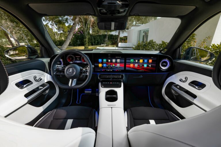 The all-new electric Mercedes-Benz GLB. The upholstery Beech Brown is currently not available and will be offered at a later date. Availability timing is subject to change. Foto: Mercedes.