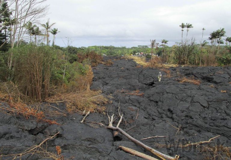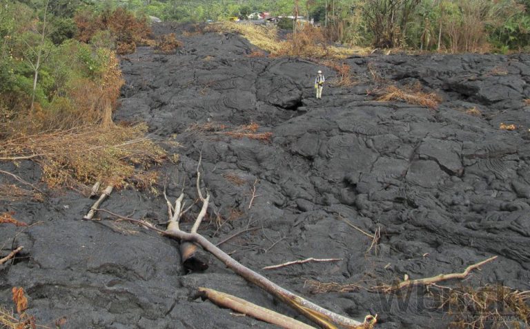 Láva vytekajúca z havajskej sopky Kilauea sa blíži k mestečku Pahoa a nachádza sa už len asi 100 metrov od obývanej oblasti. Úrady vyzvali ľudí, aby sa pripravili na evakuáciu. Havaj, 26. októbra 2014. Foto: SITA/AP