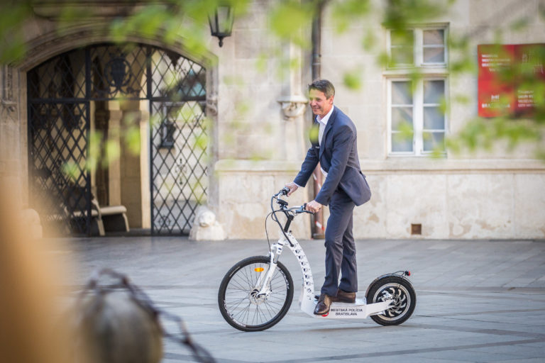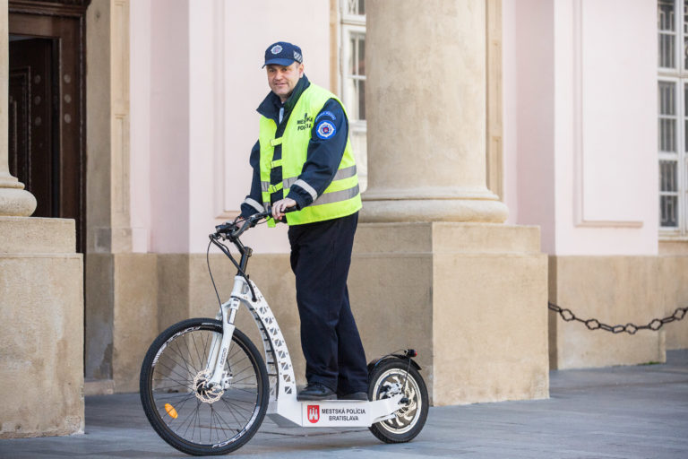 Mestskí policajti v hlavnom meste SR Bratislave budú jazdiť aj na elektrických kolobežkách. Ako na odovzdaní kolobežiek mestskej polícii povedal primátor Bratislavy Ivo Nesronal, tieto dopravné prostriedky, ktoré pripomínajú bicykel, sú nielen rýchle, ale aj ekologické.