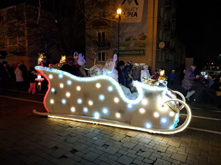 Mikuláš na saniach pri prejazde centrom Popradu pri príležitosti rozsvietenia vianočnej výzdoby, ktorú tvorí viac ako 50 prvkov, a patrí medzi najkrajšie na Slovensku. Poprad, 5. december 2024. Foto: SITA/Mária Frisová