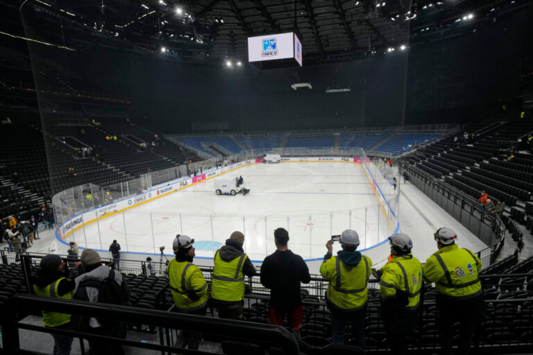 Prípravy hokejovej arény Santa Giulia v Miláne, kde sa uskutoční hokejový turnaj v rámci zimných olympijských hier 2026 v Miláne v Cortine. Taliansko, 22. októbra 2025. Foto: (AP Photo/Luca Bruno)