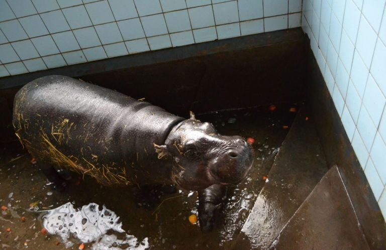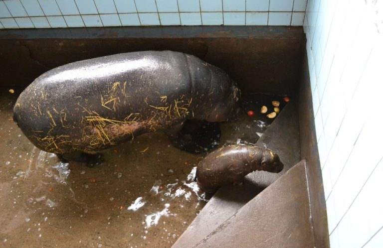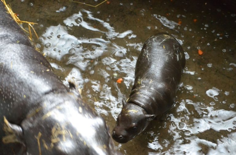 Samička hrošíka libérijského (uprostred dole) sa narodila v ranných hodinách ešte 24. januára. Hrošík liberijský (lat. Hexaprotodon liberiensis) sa od hrocha obojživelného odlišuje hlavne veľkosťou. Je menší, ľahší a nie je odkázaný na vodu v takej miere ako jeho najbližší príbuzný.