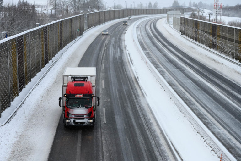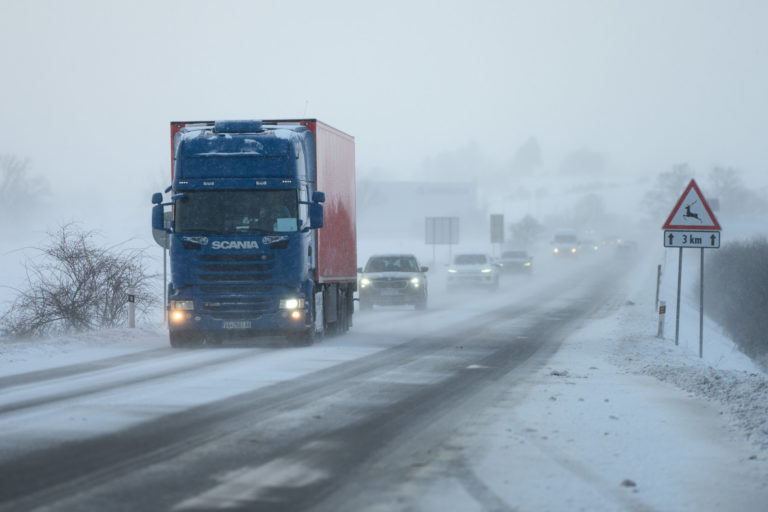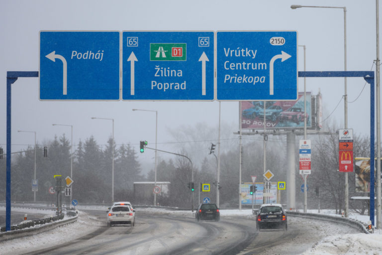 Pohľad na hlavný ťah v smere Banská Bystrica od Martina počas mimoriadnej situácie v súvislosti so snežením na severe Slovenska. Príbovce, okres Martin, 4. február 2023. Foto: SITA/Milo Fabian