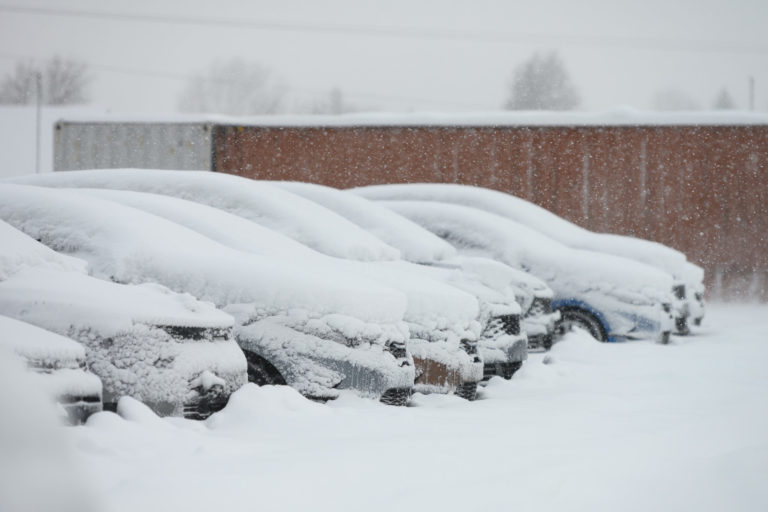Zasnežené vozidlá počas mimoriadnej situácie v súvislosti so snežením na severe Slovenska. Martin, 4. február 2023. Foto: SITA/Milo Fabian