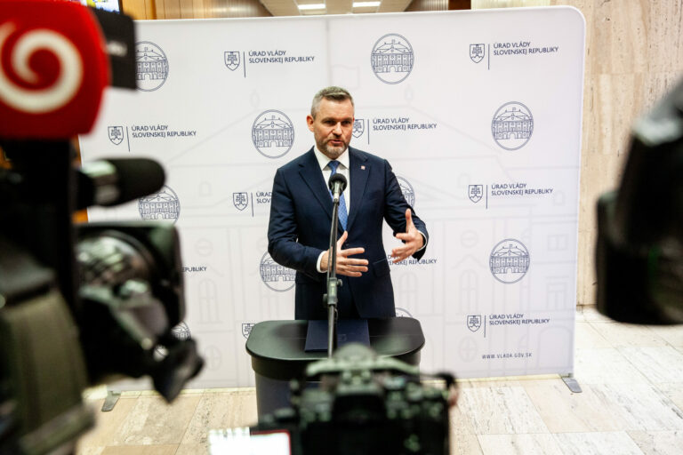 Prezident SR Peter Pellegrini počas tlačovej konferencie po mimoriadnom zasadnutí Bezpečnostnej rady SR v priestoroch Úradu vlády (ÚV SR). Bratislava, 23. január 2025. Foto: SITA/Tomáš Bokor