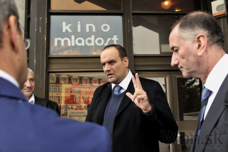Predseda SDKÚ-DS Pavol Frešo (v strede) počas príchodu na mimoriadny kongres strany. Senica, 27. september 2014. Foto: SITA/Ján Slovák