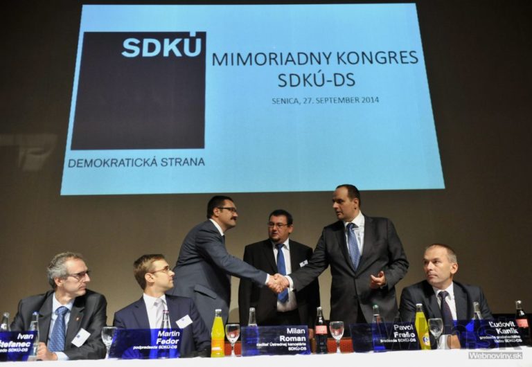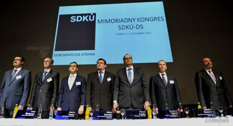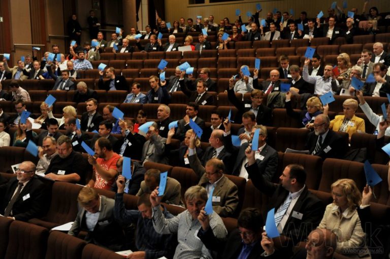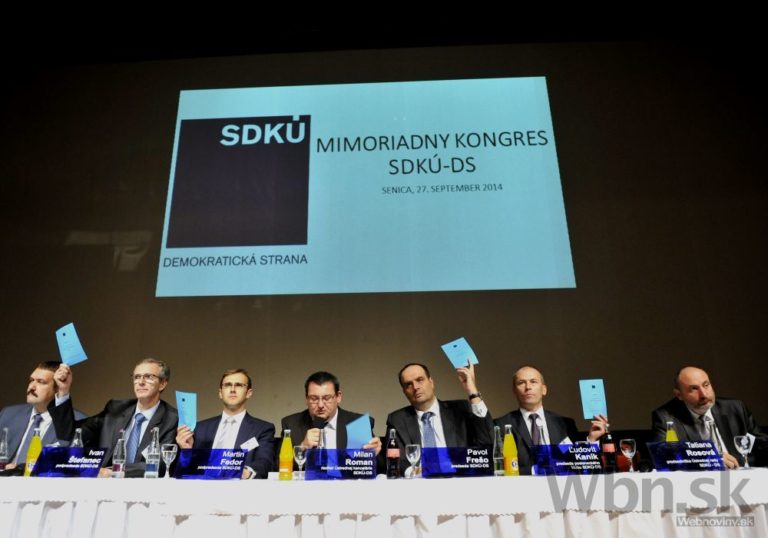 Hlasovanie o programe v úvode mimoriadneho kongresu SDKÚ-DS. Senica, 27. september 2014. Foto: SITA/Ján Slovák