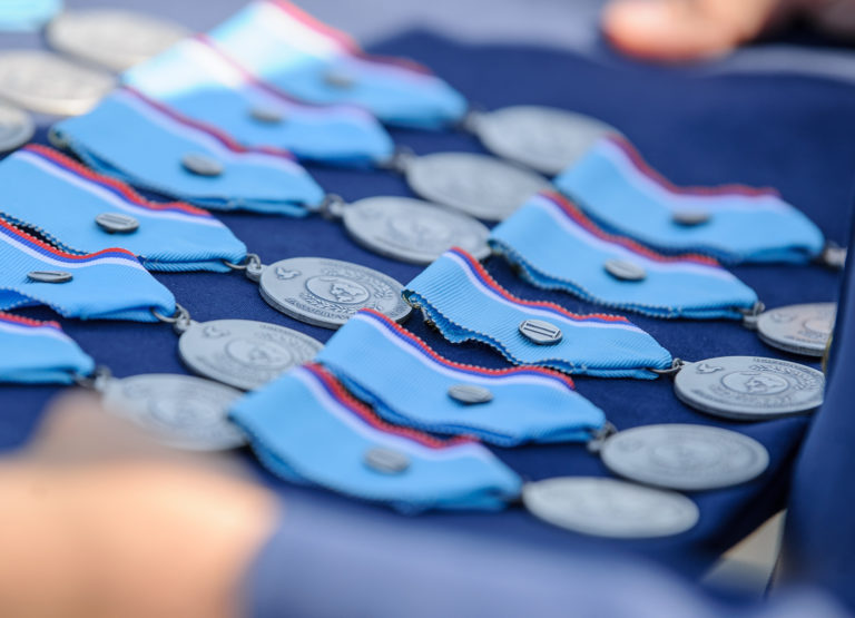 Medaily vojakov, ktorí sa vrátili z pôsobenia v misii UNFICYP na Cypre poèas privítania ministrom obrany SR v priestoroch Protilietadlovej raketovej brigády VzS OS SR v Nitre. Nitra, 21. september 2018. Foto: SITA/Martin Havran