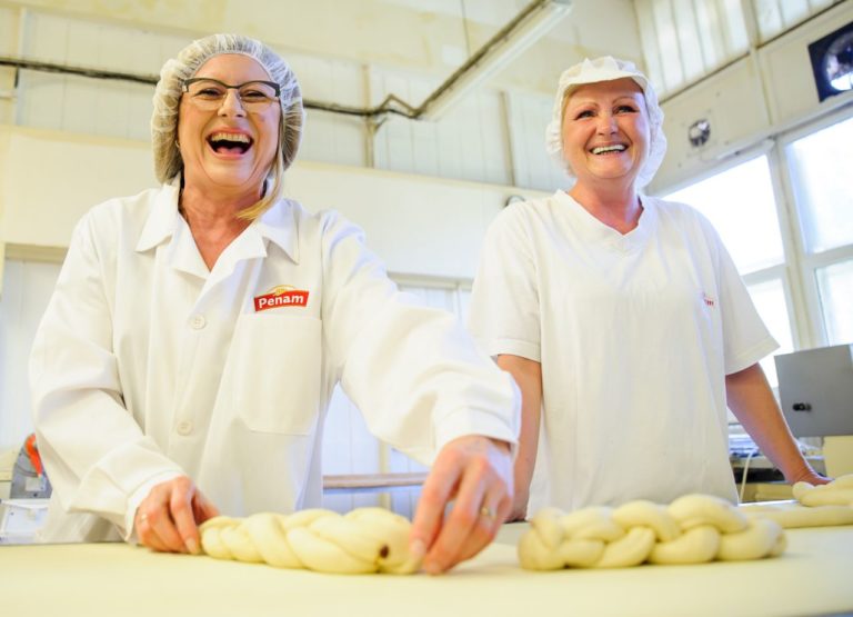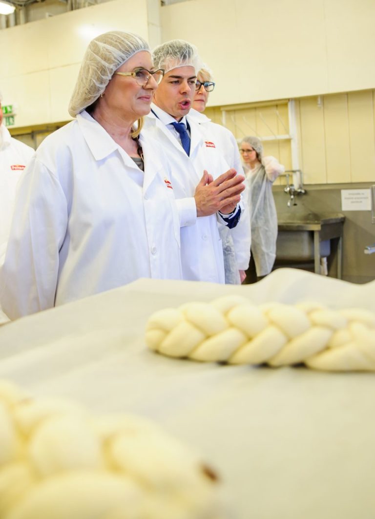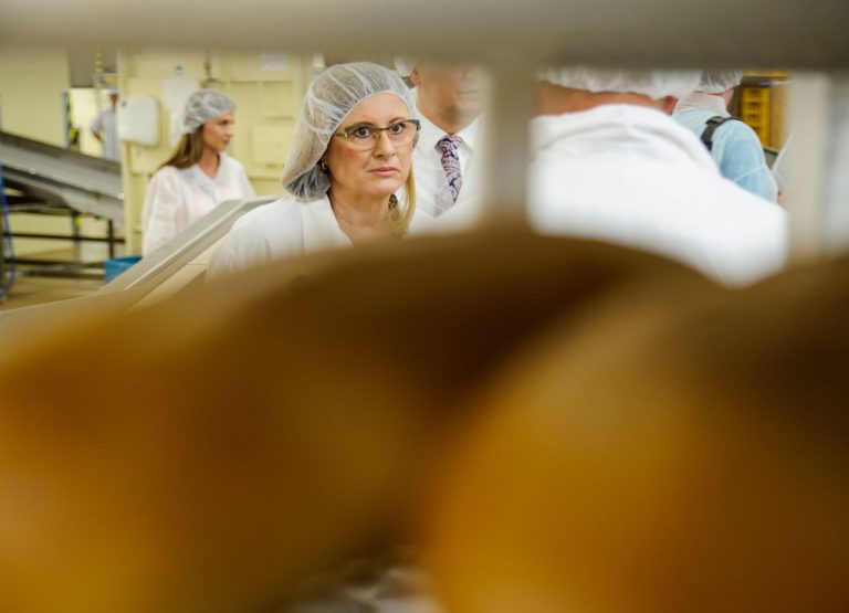 Ministerka pôdohospodárstva a rozvoja vidieka SR Gabriela Matečná (vľavo) počas návštevy pekárne Penam Slovakia. Nitra, 19. apríl 2018. Foto: SITA/Martin Havran