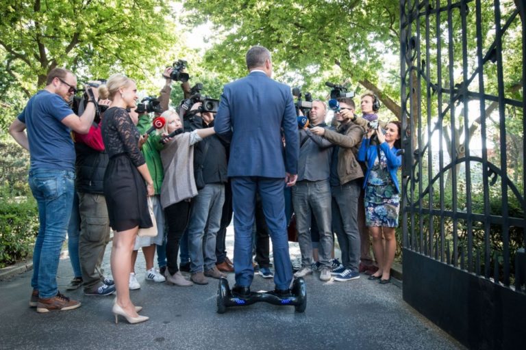 Podpredseda vlády SR pre investície a informatizáciu Peter Pellegrini prichádza na rokovanie 27. schôdze vlády SR alternatívnou dopravou v rámci Európskeho týždňa mobility. Bratislava, 21. september 2016. Foto: SITA/Marek Mrviš