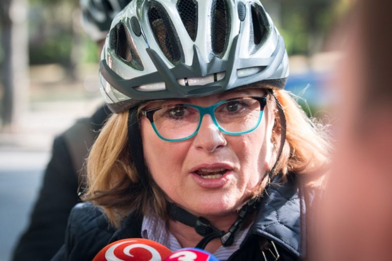 Ministerka pôdohospodárstva a rozvoja vidieka SR Gabriela Matečná počas rozhovoru pre médiá po príchode na rokovanie 27. schôdze vlády SR alternatívnou dopravou v rámci Európskeho týždňa mobility. Bratislava, 21. september 2016. Foto: SITA/Marek Mrviš