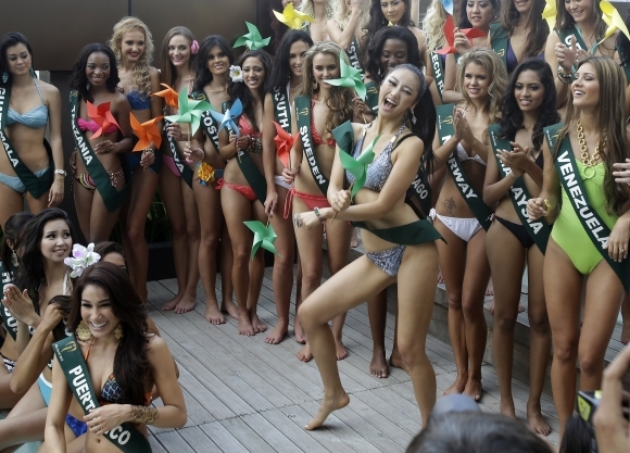 Účastníčky finále Miss Earth 2012 počas sústredenia pred finále prestížnej súťaže krásy. Foto: SITA/AP