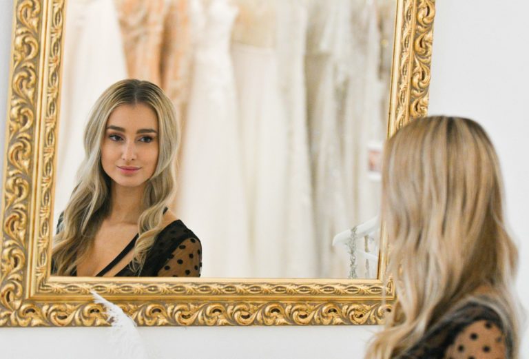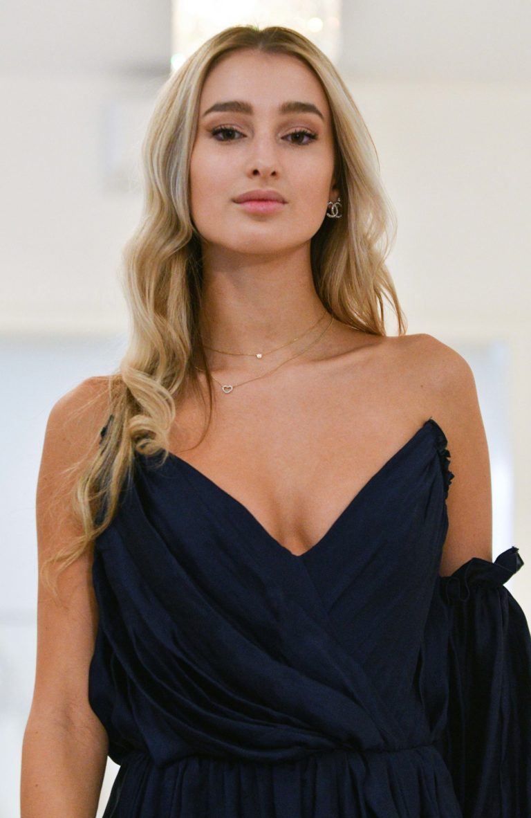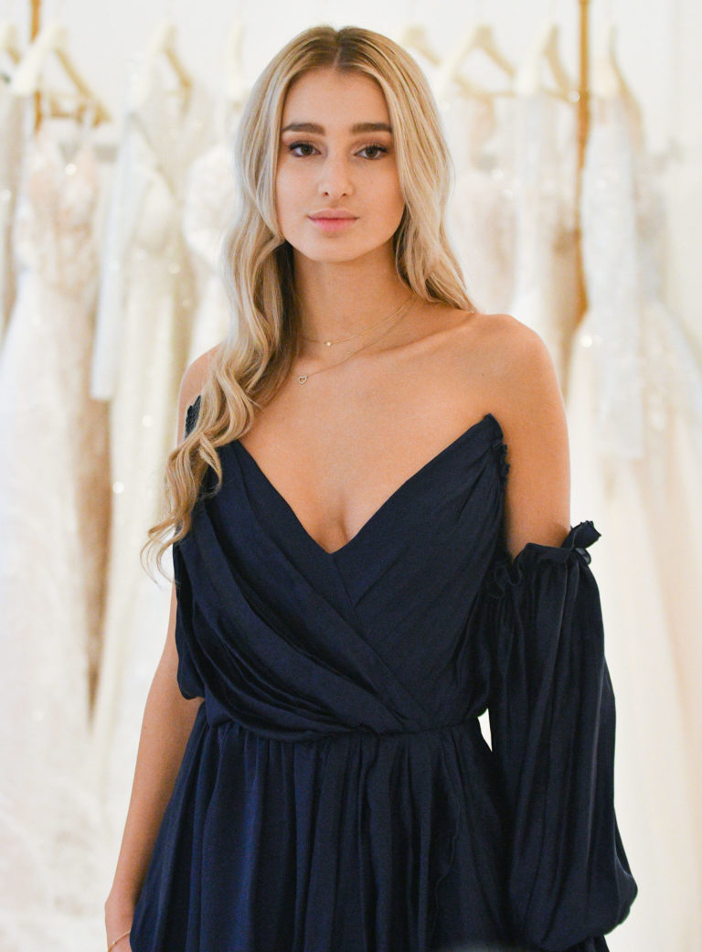 Miss Slovensko 2020 Leona Novoberdaliu počas predstavenia modelu šiat, v ktorých bude reprezentovať Slovensko na 70. ročníku svetovej súťaže MISS WORLD v Portoriku. Bratislava, 9. november 2021. Foto: SITA/Martin Medňanský