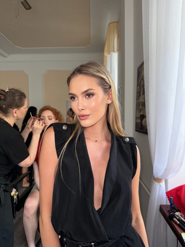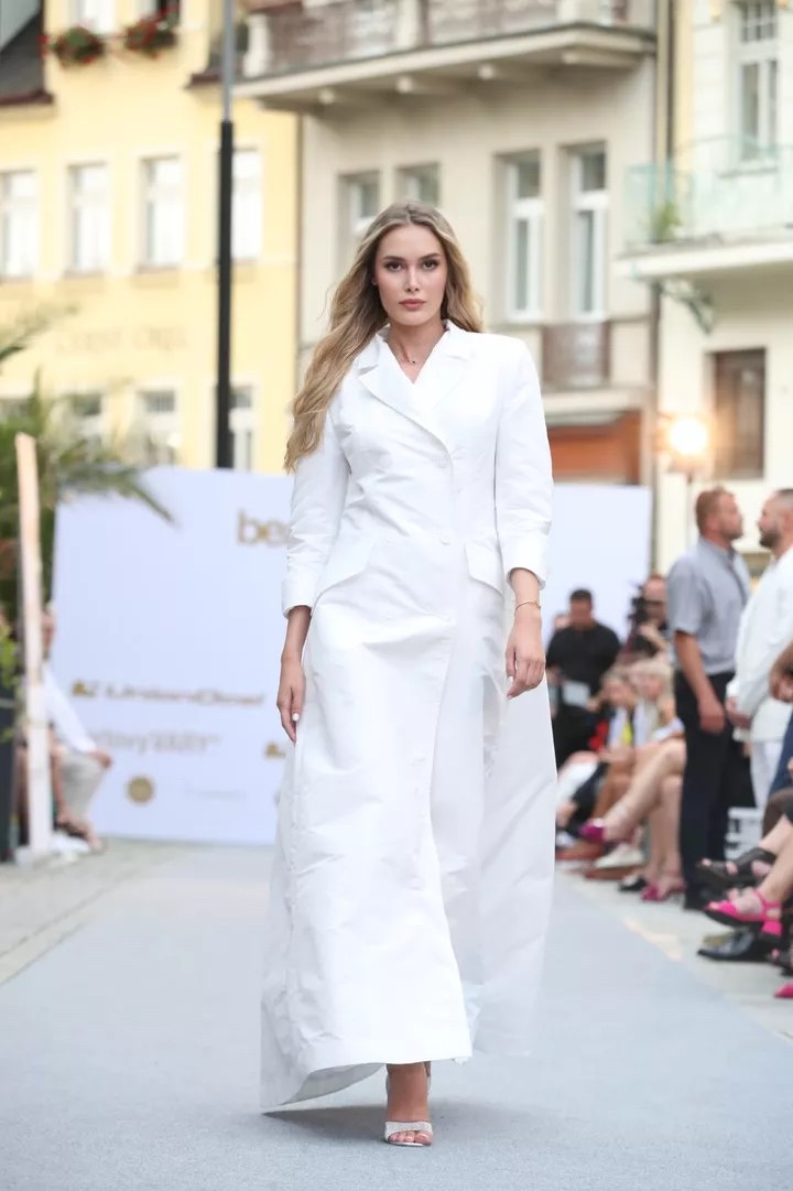 Slovenka Miss Universe 2023 Kinga Puhová sa objavila na móle módnej prehliadky Chimera Love dizajnérky Beáty Rajskej, ktorá bola súčasťou programu na filmovom festivale v Karlových Varoch. Foto: archív Kinga Puhová, Artur Koff