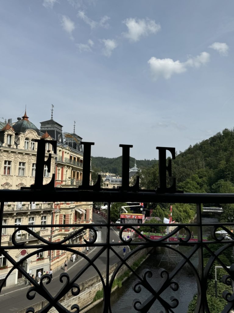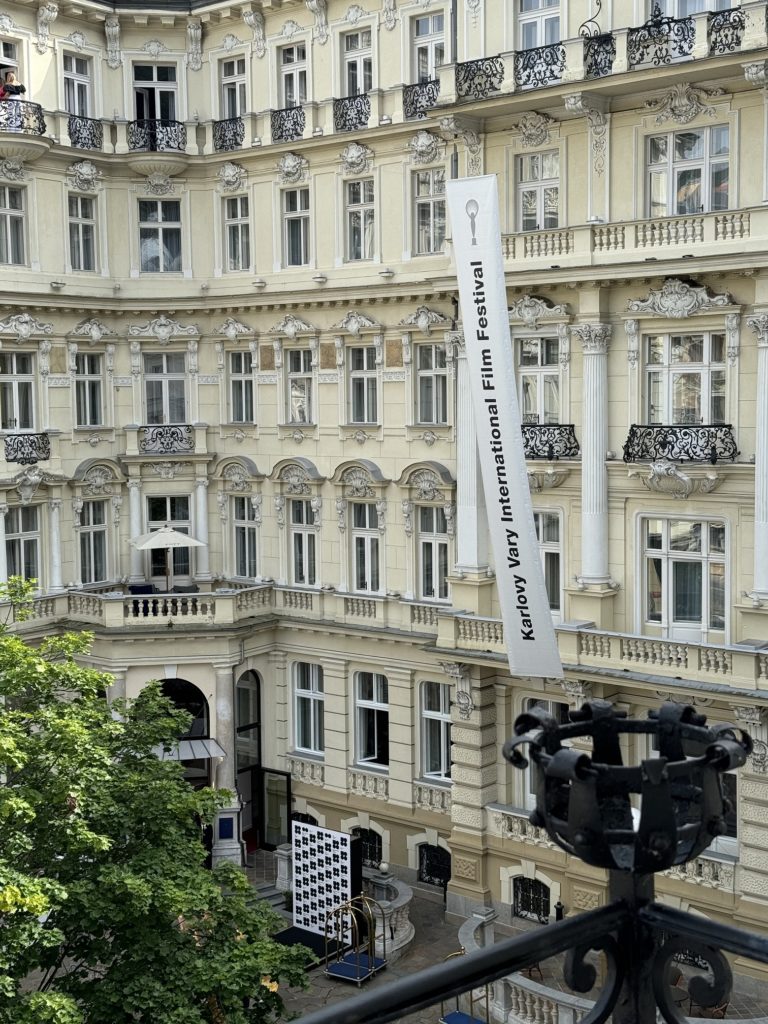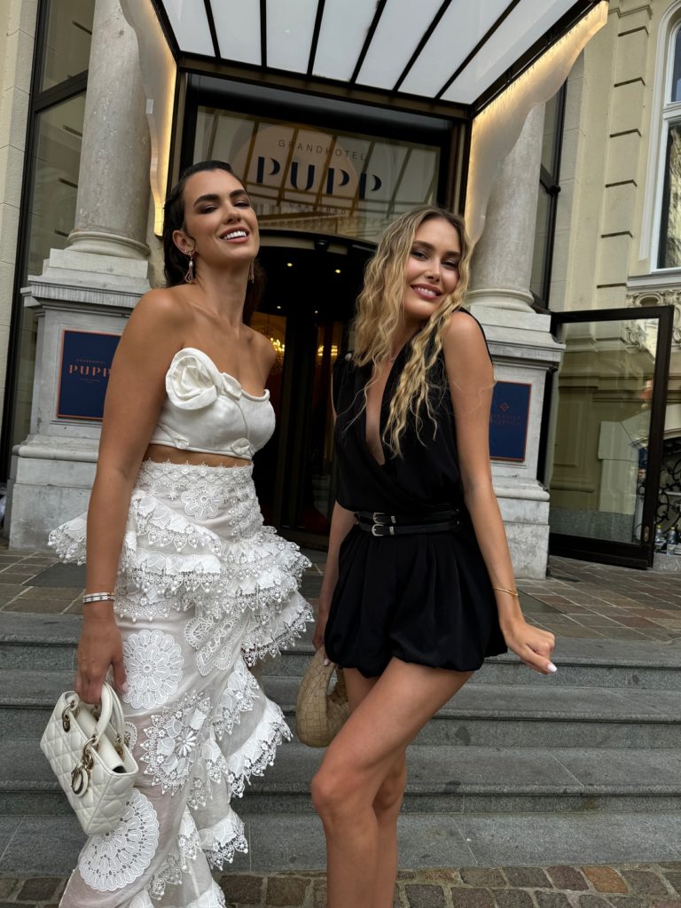 Slovenka Miss Universe 2023 Kinga Puhová a Mária Dušička pre hotelom Grand Hotel Pupp v Karlových Varoch. Foto: archív Kinga Puhová, Artur Koff