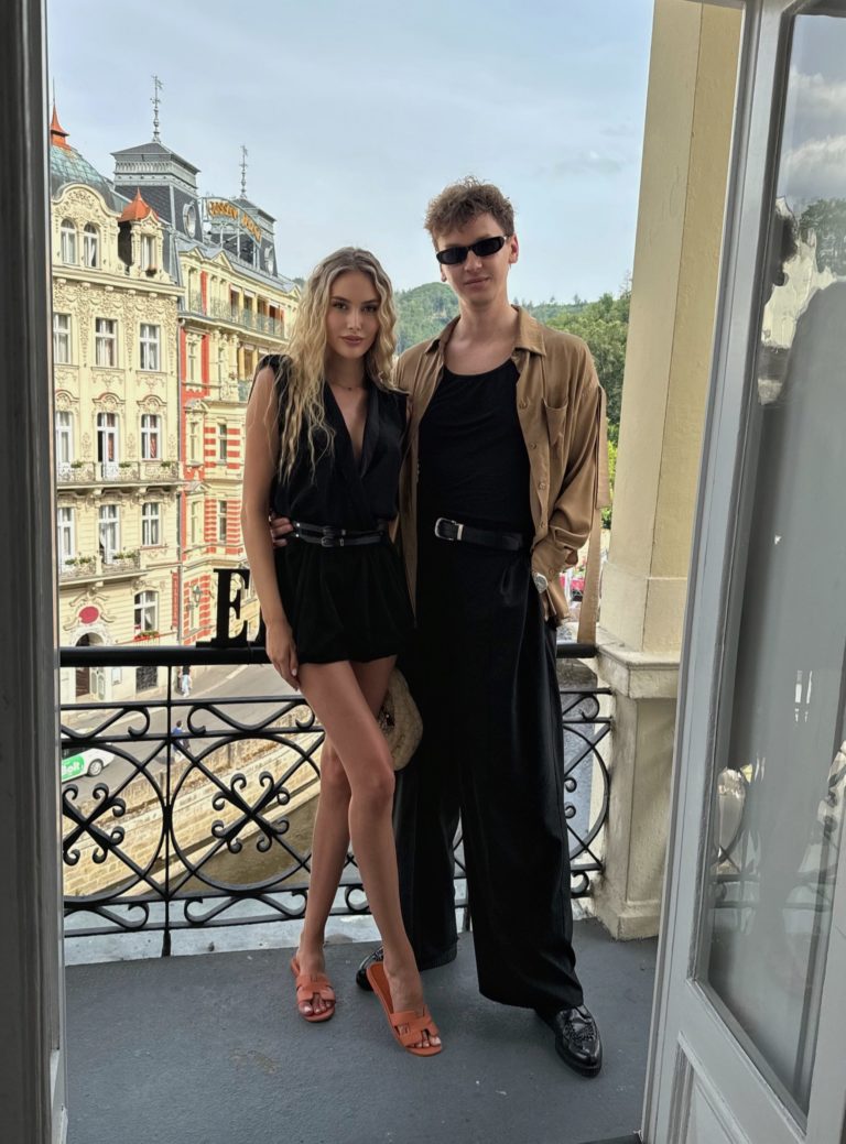 Slovenka Miss Universe 2023 Kinga Puhová a návrhár Michael Kováčik v hoteli Grand Hotel Pupp v Karlových Varoch. Foto: archív Kinga Puhová, Artur Koff