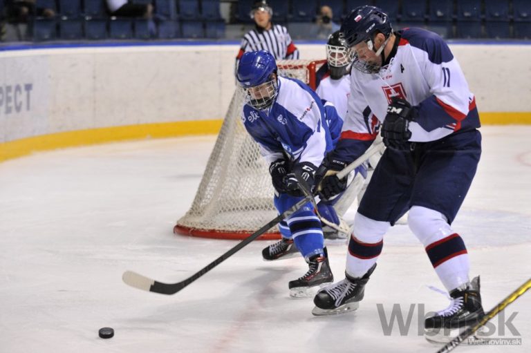 Sprava: Martin Krempaský zo Slovenska a Eeli Tolvanen z Fínska v zápase B-skupiny turnaja hokejových výberov do 18 rokov Memoriál Ivana Hlinku Slovensko - Fínsko. Bratislava, 11. august 2015. Foto: SITA/Ján Slovák