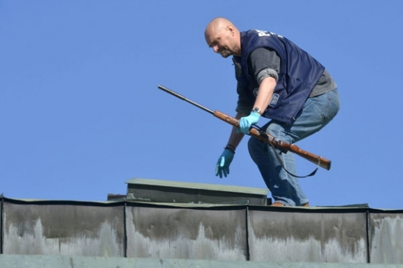 Vo fínskom meste Hyvinkää neďaleko Helsínk sa v sobotu ráno strieľalo. Iba 18-ročný Fín zastrelil zo strechy mladú ženu a ďalších ôsmich ľudí zranil. Po šialenom vyčíňaní policajtom utekal, tí ho nakoniec po niekoľkohodinovej naháňačke chytili. Foto: SITA, AP