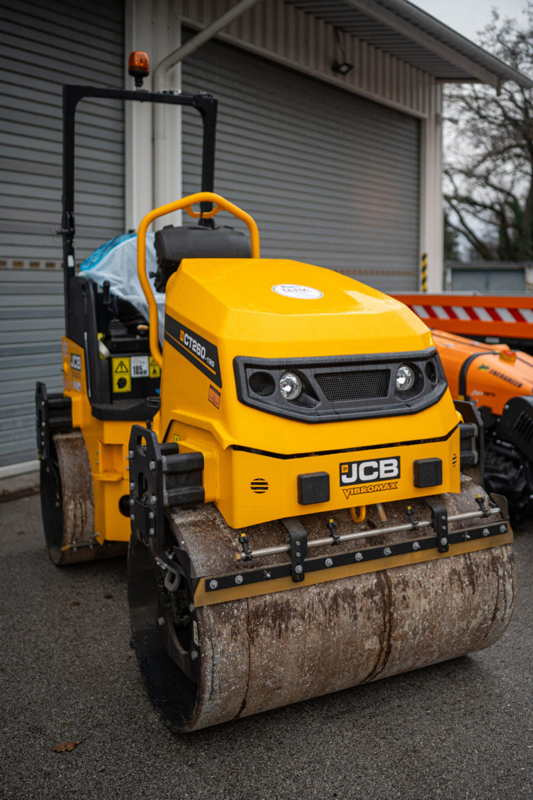 Cestný valec JCB počas predstavenia nových mechanizmov v Správe ciest Bratislavského samosprávneho kraja (BSK), ktorá má na starosti cesty II. a III. triedy. Bratislava, 5. január 2024. Foto: SITA/BSK