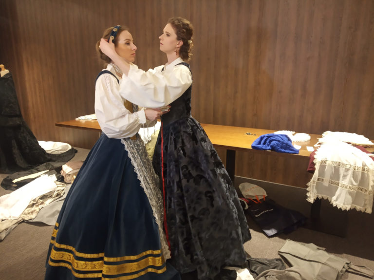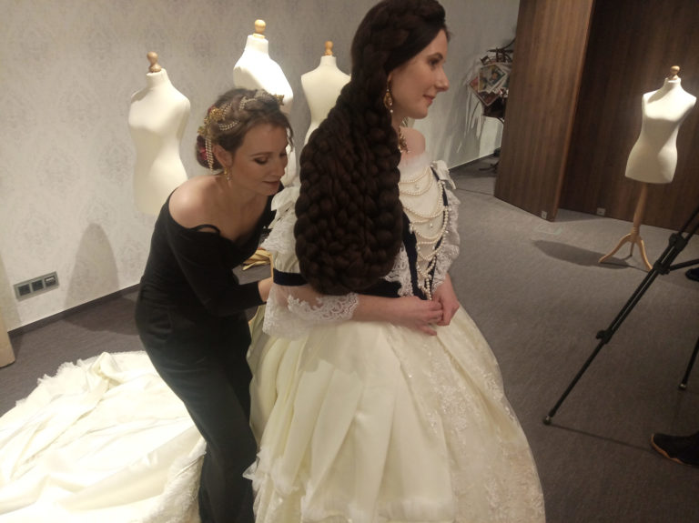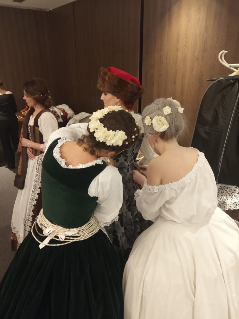 Príprava na módnu prehliadku dobových modelov známych aristokratiek v Tatranskej Lomnici, 17. december 2022. Foto: SITA/Mária Frisová