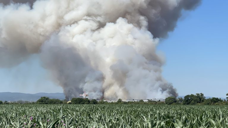 Pri Bratislave v mestskej časti Vrakuňa pri Letisku M. R. Štefánika vypukol v sobotu mohutný požiar. Bratislava, 15. júl 2023. Foto: SITA/DIana Černáková.