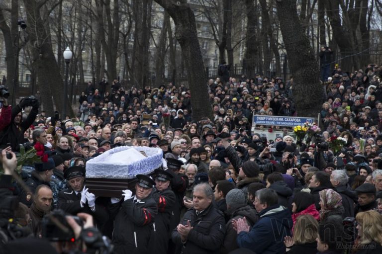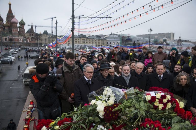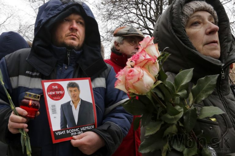 So zavraždeným bývalým ruským vicepremiérom Borisom Nemcovom sa v utorok do Moskvy prišli rozlúčiť tisícky ľudí. Putinovho kritika zastrelil v piatok večer neznámy páchateľ, keď kráčal po moste cez rieku Moskva v spoločnosti jeho priateľky, ukrajinskej modelky Anny Duryckej, Moskva, 3. Marec, 2015. Foto: SITA/AP