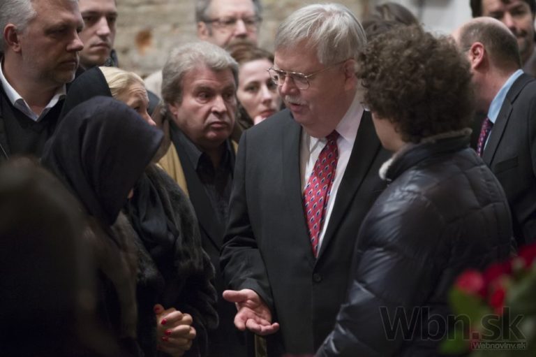 Americký ambasádor v Rusku John Tefft, druhý sprava, sa rozpráva s príbuznými zosnulého Borisa Nemcova. So zavraždeným bývalým ruským vicepremiérom Borisom Nemcovom sa v utorok do Moskvy prišli rozlúčiť tisícky ľudí. Putinovho kritika zastrelil v piatok večer neznámy páchateľ, keď kráčal po moste cez rieku Moskva v spoločnosti jeho priateľky, ukrajinskej modelky Anny Duryckej, 3. Marec, 2015. Foto: SITA/AP