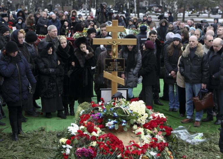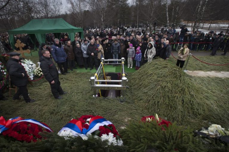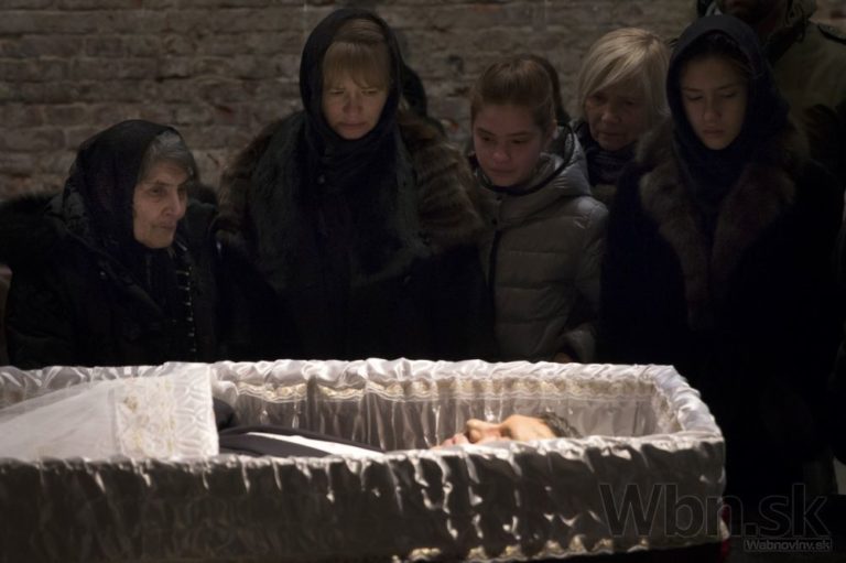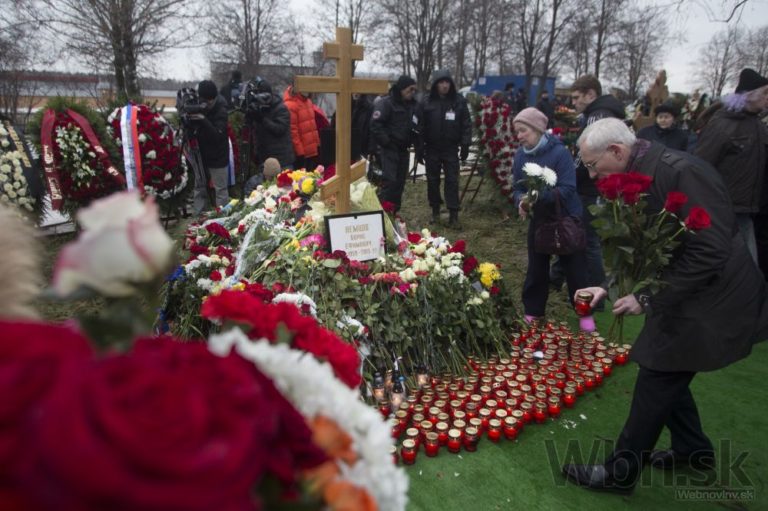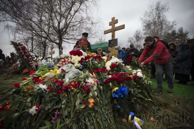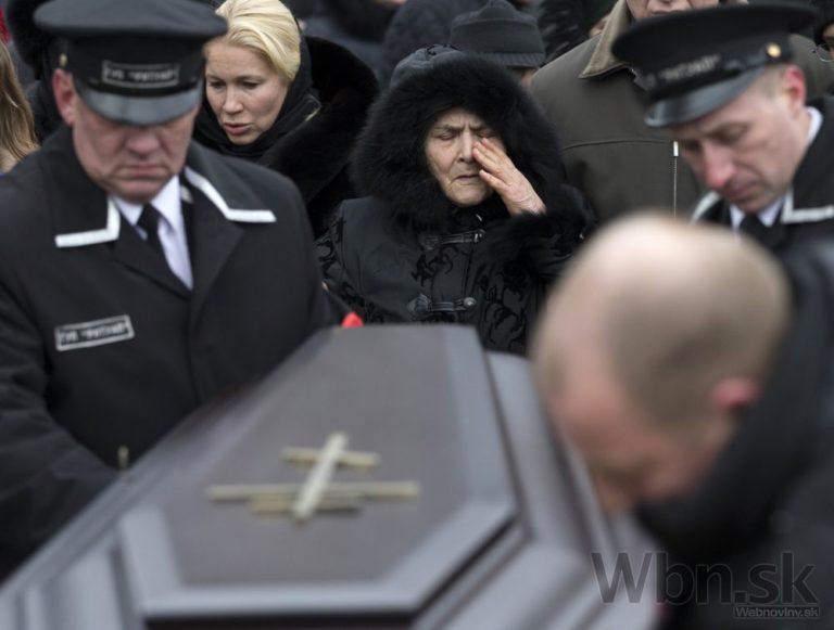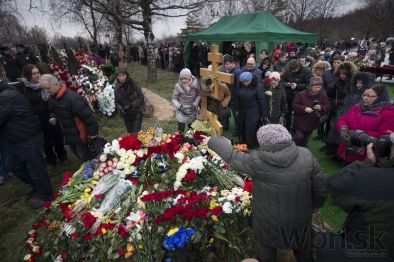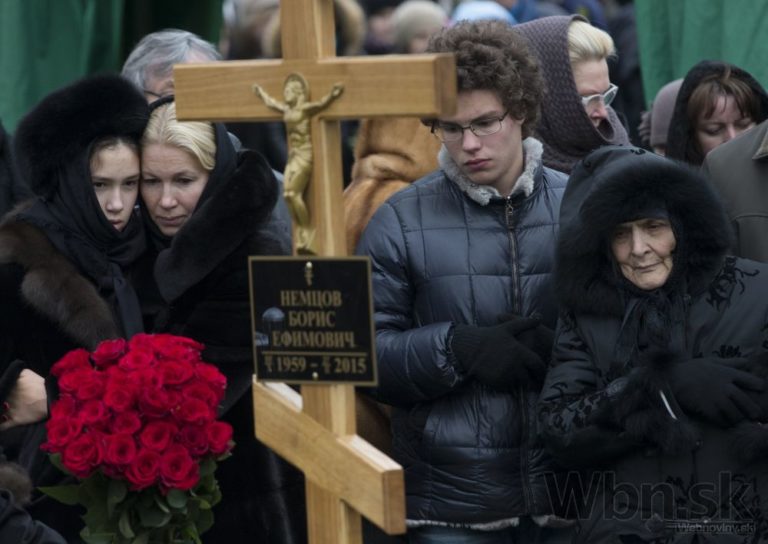 Príbuzní zosnulého politika sa vzájomne utešujú vedľa jeho rakvy na Trojekurovskom cintoríne. So zavraždeným bývalým ruským vicepremiérom Borisom Nemcovom sa v utorok do Moskvy prišli rozlúčiť tisícky ľudí. Putinovho kritika zastrelil v piatok večer neznámy páchateľ, keď kráčal po moste cez rieku Moskva v spoločnosti jeho priateľky, ukrajinskej modelky Anny Duryckej, Moskva, 3. Marec, 2015. Foto: SITA/AP