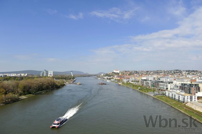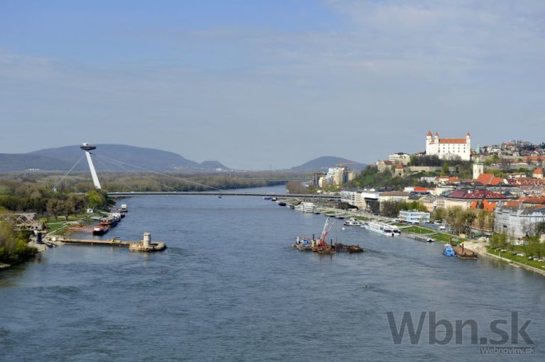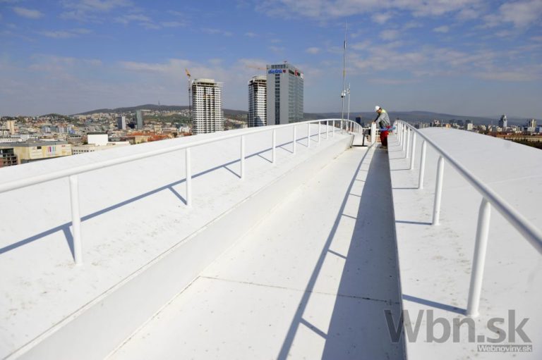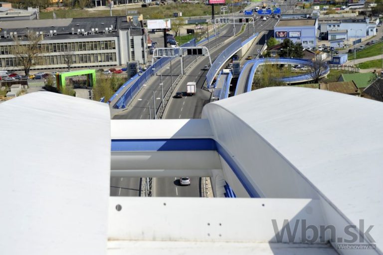 Pohľad z oblúka Mosta Apollo počas novinárskej exkurzie pri príležitosti 10-výročia mosta. Bratislava, 15. apríl 2015. Foto: SITA/Ján Slovák