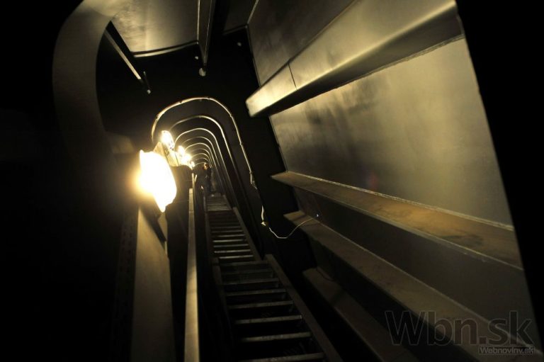 Pohľad na vstup do útrob Mosta Apollo počas novinárskej exkurzie pri príležitosti 10-výročia mosta. Bratislava, 15. apríl 2015. Foto: SITA/Ján Slovák