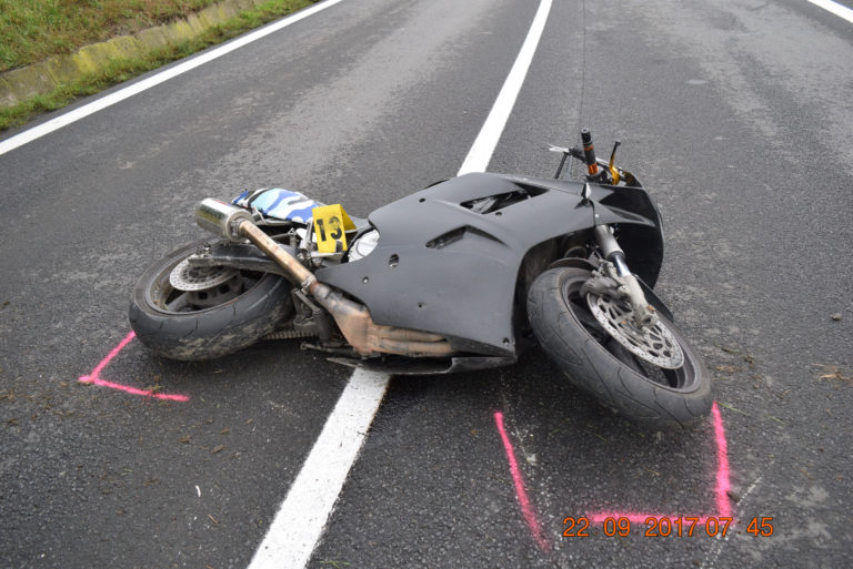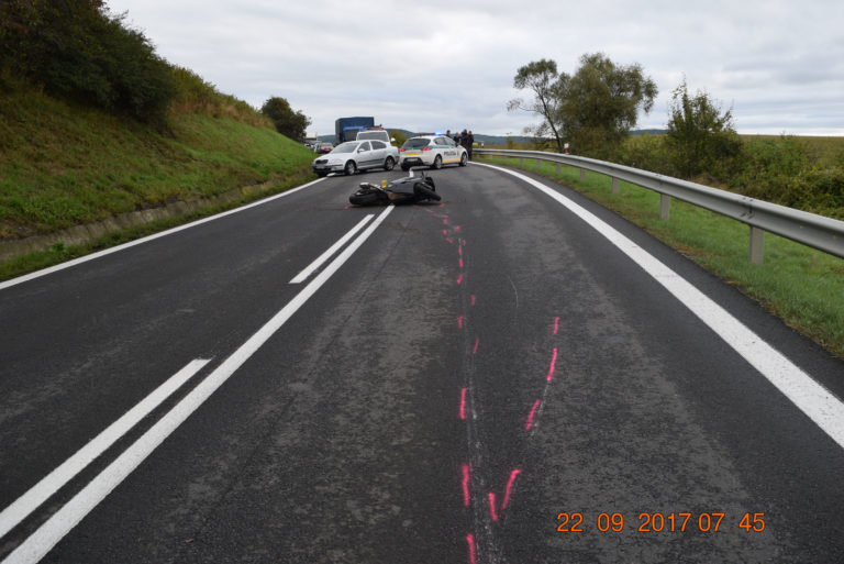 Po zrážke so srnou prišiel dnes ráno o život mladý motocyklista. Nehoda sa stala krátko po 06:00 za mestom Humenné. Dvadsaťtriročný motocyklista na Yamahe nestihol zareagovať, keď sa náhle zjavila srna na ceste. Po zrážke Peter spadol a zomrel na mieste. Bratislava, 22. september 2017. Foto: SITA/KR PZ Prešov
