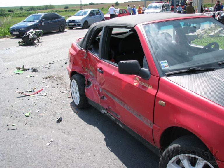 Desivo vyzerajúca dopravná nehoda sa stala v Malom Krtíši, pri ktorej 21-ročný vodič pri odbočovaní nedal prednosť motorkárovi. Bratislava, 21. máj 2014.
