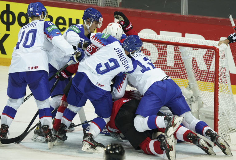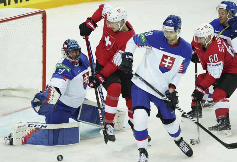 Slováci prehrali na majstrovstvách sveta v hokeji v Rige so Švajčiarmi. Foto: SITA/AP.