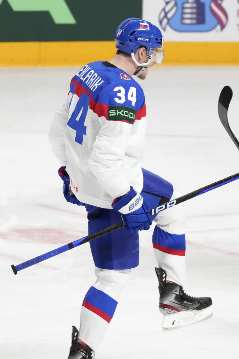 Slovenský útočník Peter Cehlárik sa teší zo svojho gólu v sieti Nórska v zápase základnej B-skupiny na MS v hokeji 2023. Riga (Arena Riga), 23. máj 2023. Foto: SITA/AP.
