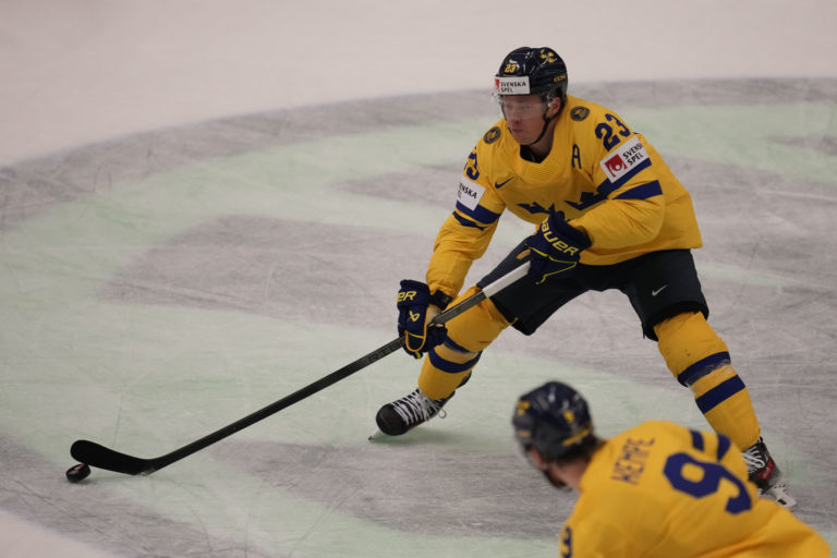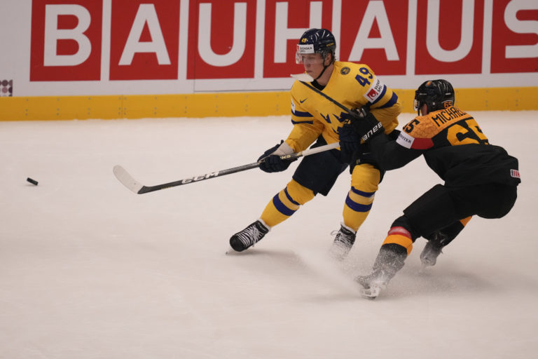 Lucas Raymomd zo Švédska počas zápasu základnej B-skupiny proti Nemecku na MS v hokeji 2024. Ostrava (Ostravar Aréna), 13. máj 2024. Foto: SITA/AP