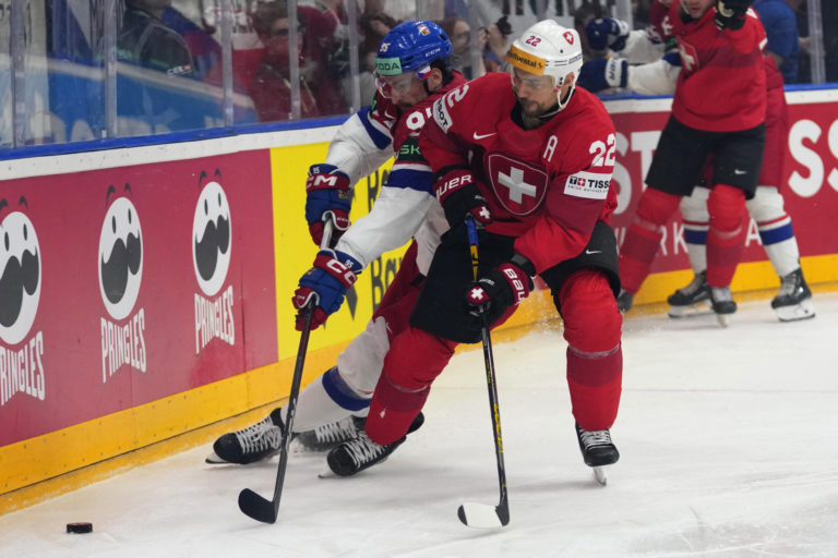 Andres Ambühl zo Švajčiarska počas zápasu základnej A-skupiny proti Česku na MS v hokeji 2024. Praha (O2 Arena), 13. máj 2024. Foto: SITA/AP